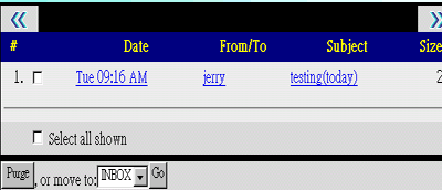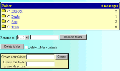 一般來說,用戶的電子郵件,都是存放於"INBOX"裡。故此click進"INBOX"便可檢查郵件。而其它的folder則視情況而定,由用戶自決定。一般來說,"Drafts"用來存放用戶所新增的郵件、